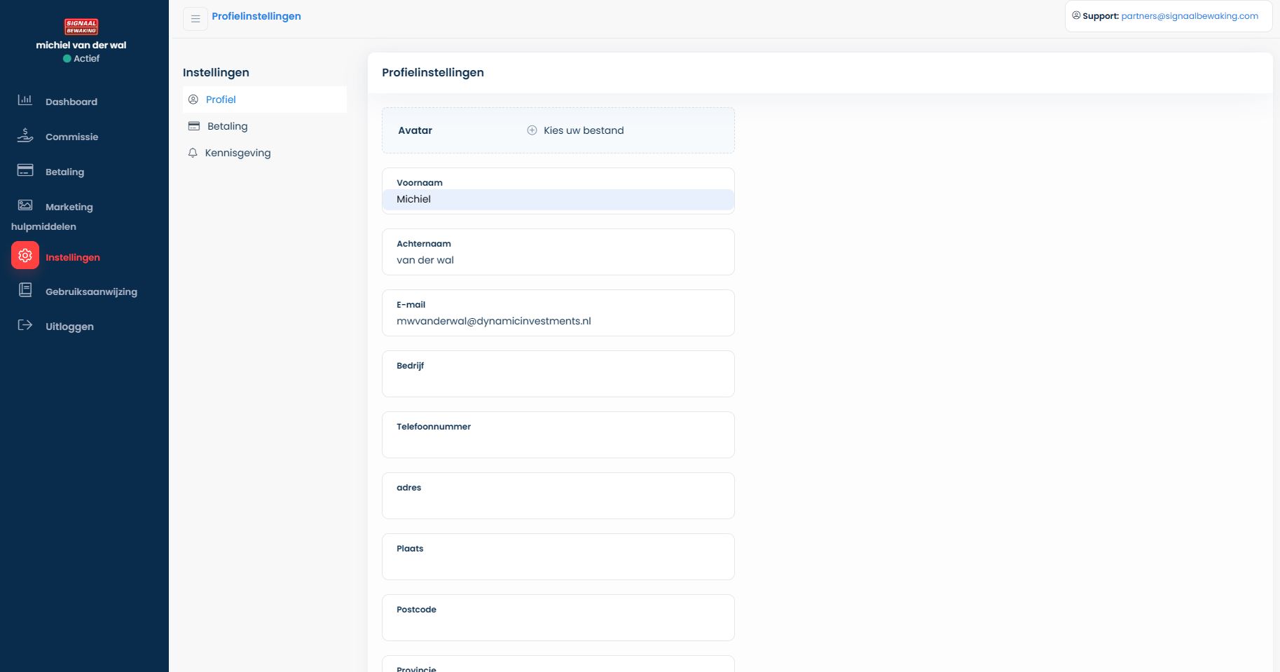 2.2. Bij Instellingen kunt u uw persoonlijke gegevens invullen zodat de handelaar u beter kan leren kennen. Klik vervolgens op Wijzigingen opslaan om uw updates op te slaan: